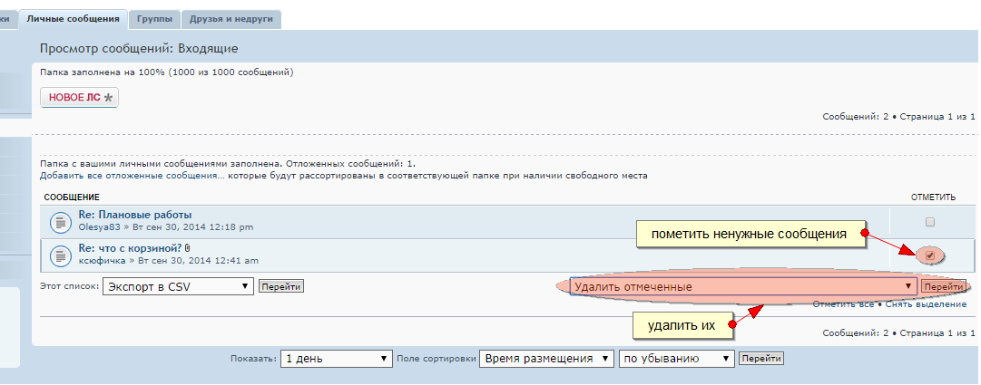 Для добавления отложенных сообщений необходимо сначала освободить папку для них, удалив старые или ненужные сообщения:
