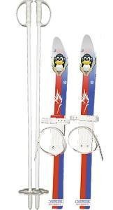 Длина лыж 660 мм, палок – 750 мм. Лыжи изготовлены из пластика, а палки из алюминия. Подойдут для детей в возрасте от 2 до 4 лет.