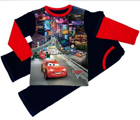 - костюм синий с Тачкой - как и футболки, взяла 30 р-р, однако он оказался нам огромный. Подарили племяннику на рост 108. Сам по себе костюм не трикотажный, а тонкий хлопковый. Спрашивала - не линяет, с картинкой все нормально, не выцвела.