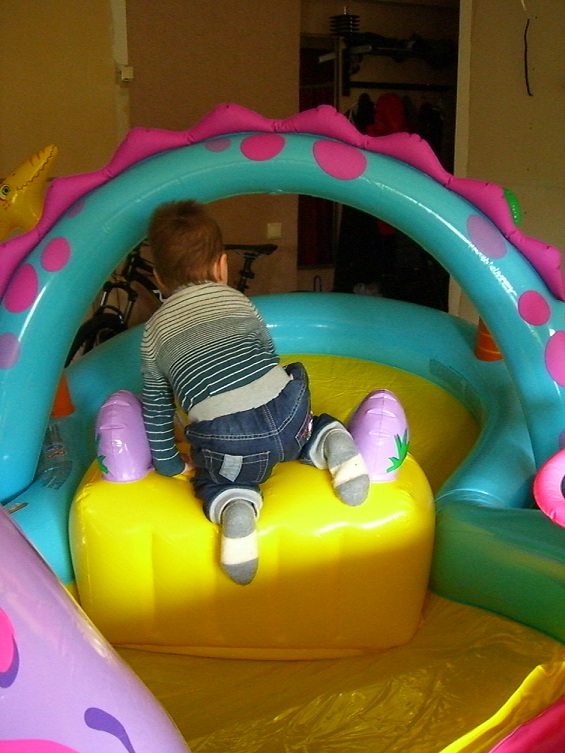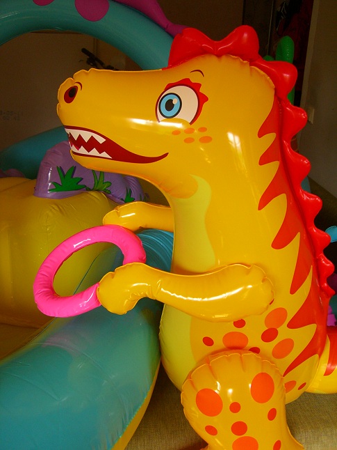 Игровой центр ну оч. понравился, яркий, огромный, два динозавра отдельно, 4 мячика мягких,