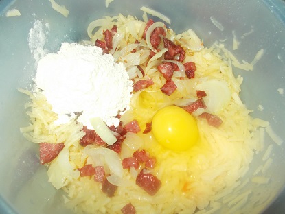 3. в перекрученное мясо добавить яйцо и соль.