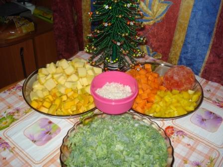 Все овощи которые есть в доме-у меня кабачки ,лук.морковь,укроп, замороженный перец и помидоры.