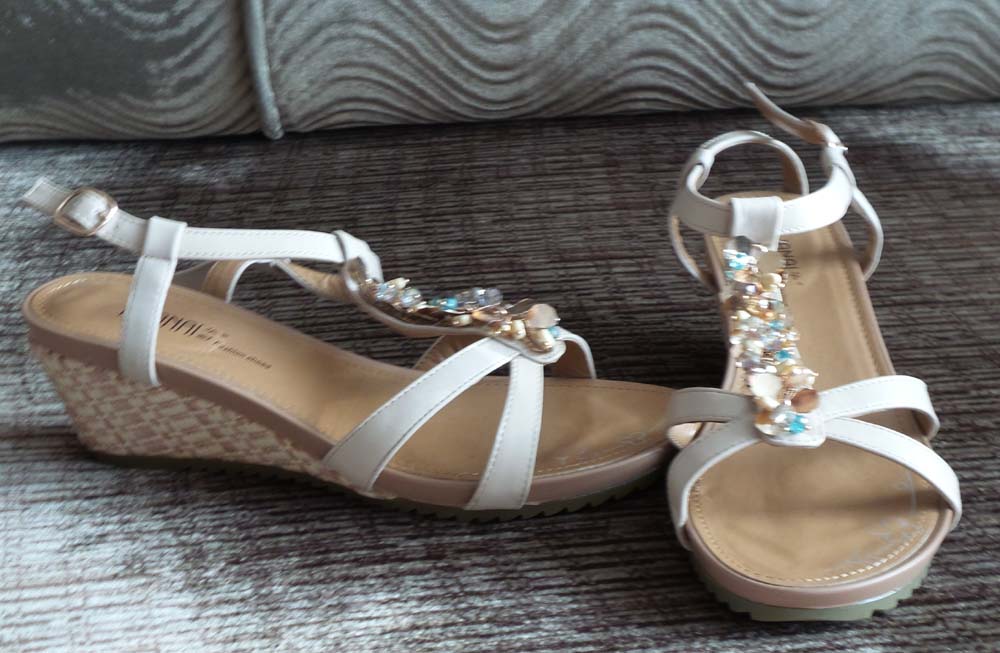 Сегодня забрала долгожданные босоножки ,ожидала ,что обувь будет цветом как на фото с сайта ,но увы 2 пары ждала белого цвета ,а пришли другого цвета,босоножки закрытые заказывала черного цвета-отзазали ,пришлось бежевые брать,понравилась модель! Обувь сделана аккуратно :good: ,рамер 38 у всех(длина моих обоих стоп 23,8)Все обошлось 2221,36 рублей. :dirol: