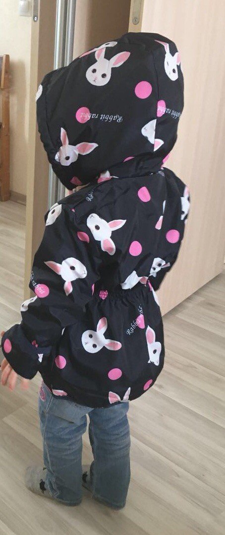 На ребенка садится отлично, в поясе резинка., рукава - двусторонние в местах подворота, комфортный глубокий капюшон, подклад - плотный флис