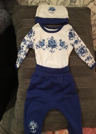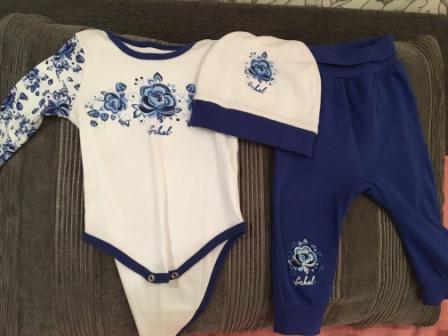 Боди, шапочка и штанишки Гжель на дочурке