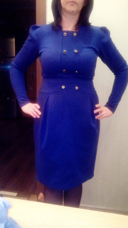 Первым моим заказом (почти 2 года назад) было Платье арт. 702 синего цвета 48 р-р. Платье для зимы. Ткань с блеском плотная не тянется, на спинке молния(я платье даже сейчас одеваю не расстёгивая). Носила платье немного - ткань немного закаталась.