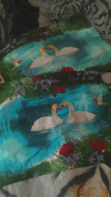 в комплекте с дельфинами почему то наволочки 50*70 пришли не с дельфинами, а с лебедями и совсем не тот материал, но ничего страшного, нам только 70*70 нужны ;)